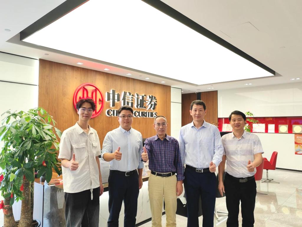 曾总对数字金融学院一行的来访表示热烈欢迎,并简要介绍了中信证券公司的业务发展情况和未来规划。他表示,中信证券公司作为行业头部券商,一直致力于金融人才的培养和引进,希望与我校数字金融学院建立长期稳定的合作关系。双方就当前金融行业的趋势、人才培养需求等话题进行了深入的探讨和交流。