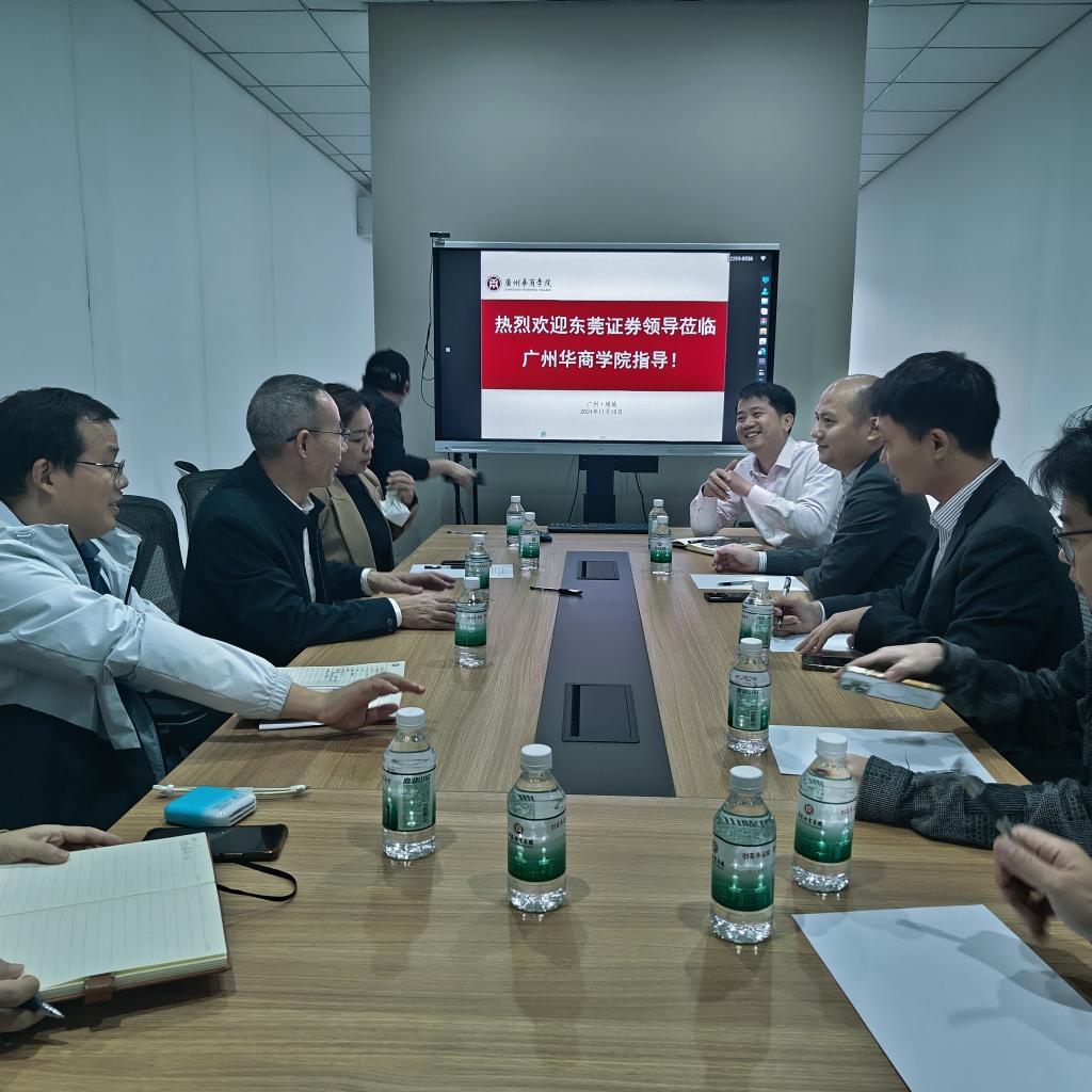 2024年11月21日,东莞证券股份公司长安分公司营销总监邓汉新、区域总监施祖林、区域总监助力林明辉一行受邀到访数字金融学院,共商建立产业学院事宜。广州华商学院数字金融学张纯威副院长、邱会锋副院长、李明杰副院长、数字经济与金融科技产业学院办公室主任赵娟、金融科技系副主任赵彬琰、金融工程系副主任廖志芳、经济与金融系副主任魏攀、数字金融学院钟坚毅副教授出席本次合作会议。