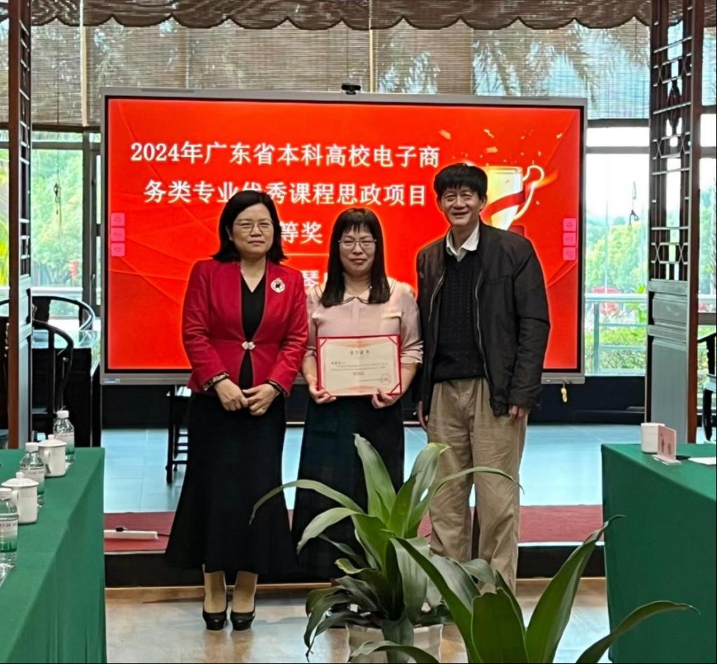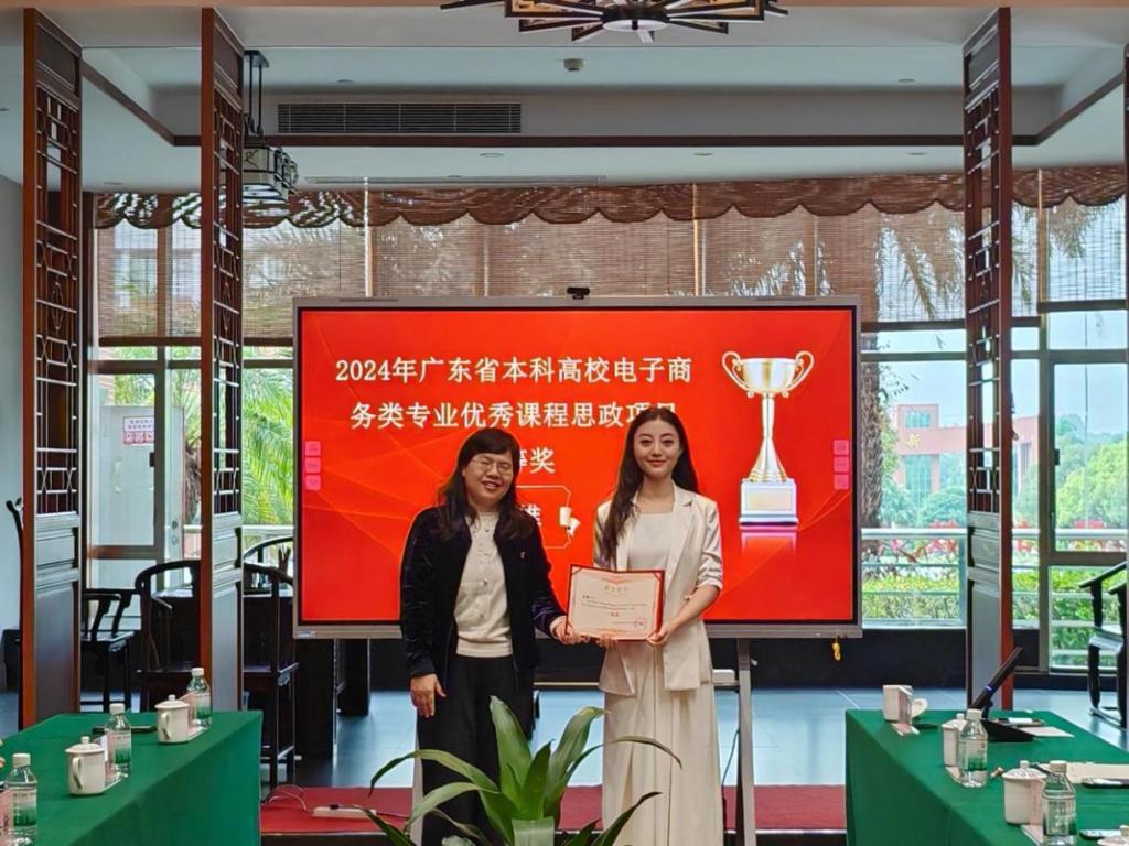2025年3月13日,广东省本科高校电子商务类专业教学指导委员会主任委员邓顺国教授、省电商教指委副主任委员秘书长易法敏教授、省电商教指委副主任委员贺敏伟教授、省电商教指委副主任委员黄丽娟教授、省电商教指委副主任委员王和勇教授、广州经纬国际控股集团有限公司董事长李育海等专家莅临我校,为在2024年电子商务类优秀思政课程评选中获奖的七位教师举行颁奖仪式。广州华商学院党委书记陈玉欢、数字经贸学院院长李广明、副院长李伟、院长助理赵慧琴等领导出席了本次仪式。