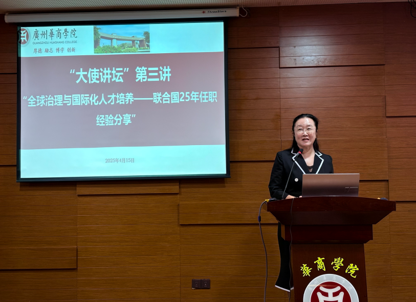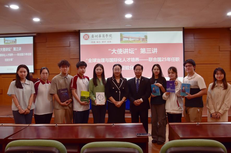 为培养具有国际视野和全球竞争力的青年才俊,为国际组织和参与全球治理做好人才储备,广州华商学院“大使讲坛”第三讲于2025年4月15日在中央图书馆报告厅举行。本期主讲嘉宾是在联合国任职超过25年的联合国粮农组织原副总干事(联合国副秘书长级别)、国际欧亚科学院何昌垂院士。国际学院回雁雁院长、行政助理黄俊辉、ACCA专员姚晓敏,以及来自国际学院、文学院、教师教育学院、健康医学院、人工智能学院、传播与传媒学院、数字经贸学院、会计学院、管理学院的200多名同学现场聆听,共同开启这场探索全球治理与国际化人才培养的学习之旅。国际学院回雁雁院长主持本场讲坛。