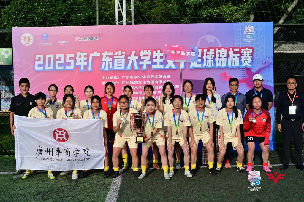 比赛中,我校女足队员配合默契、斗志顽强、奋勇拼搏、团结互助、永不言弃,为观众呈现了一场场扣人心弦的绿茵对决。在季军争夺战中,我校以点球3:1战胜广东药科大学,斩获季军。教练员黄程斌、梁银雄老师荣获“广东省优秀教练员”称号,圆满完成了赛前制订的目标。这是华商女足首次在该赛事中登上领奖台,创造了历史性的辉煌时刻,为广州华商学院20周年校庆献上了一份沉甸甸的贺礼!
