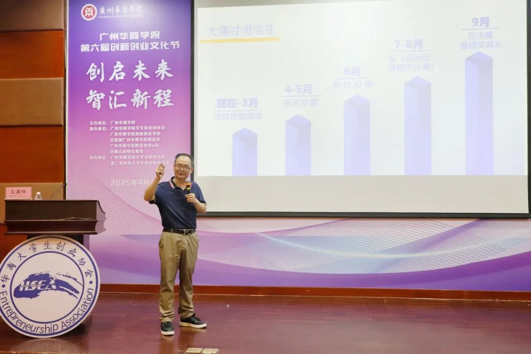2025年4月22日,由广州华商学院主办,广州华商学院学生就业创业处、广州华商学院创新创业学院、共青团广州华商学院委员会、广州华商学院就业创业e站、华商众创孵化基地承办,广州华商学院大学生创业协会、各二级学院大学生创业协会分会协办的广州华商学院第六届创新创业文化节开幕式以线上线下相结合的形式在广州校区会议中心4楼报告厅、肇庆校区6号楼307(分会场)同步举行。