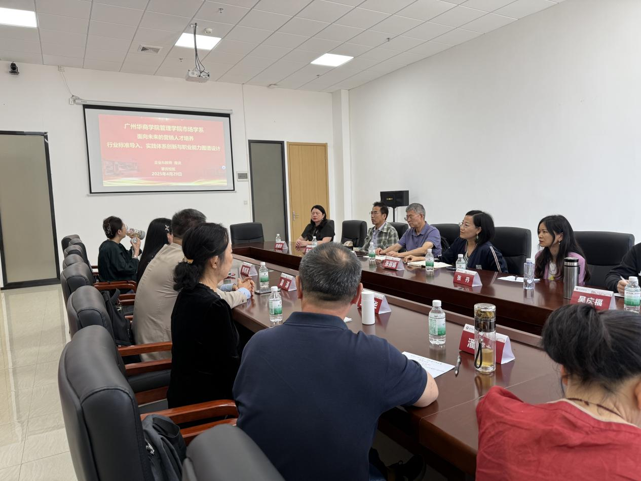 2025年4月29日上午,广州华商学院教学督导组秦陇一教授、管理学院教学秘书梁林海、管理学院市场学系主任张丽娟、副主任马航通,市场学系金明华教授、高环成教授、潘盛之教授、吴庆福副教授、贺嫦珍副教授、任欣鹭博士、张俊、张丹等一行12人前往肇庆校区,出席广州华商学院管理学院市场学系期中教师座谈会暨“面向未来的营销人才培养——行业标准导入、实践体系创新与职业能力图谱设计:企业&教师座谈会”。本次座谈会邀请了明美新能源集团韩晓英博士和拥有外企30余年工作经验的龚涛博士两位行业经验丰富的嘉宾,分享他们在新能源、快销品等领域的实践经验,为在场的教师们提供行业洞察。