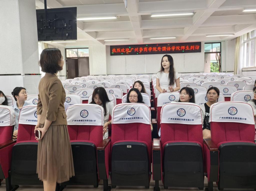 2025年5月6日下午,外国语学院一行前往广州市黄埔区东荟花园小学,开展认知实习活动。黄埔区东荟花园小学李晓宇校长、教导处魏巧璐副主任、沈晓泽老师以及黄埔区骨干教师、一级教师吴曦,与外国语学院副院长甄玲、赵曼翡老师、肖茜老师及实习学生共同参与。