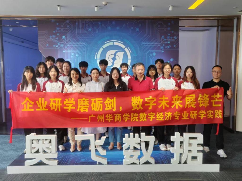 为深化产教融合,推动数字经济专业人才培养与产业需求精准对接,2025年4月29日,数字经贸学院院长李广明教授、数字经济系副主任彭珍老师、专任教师武志勇老师和路婕老师、24级辅导员路璐老师,带领数字经贸学院24级数字经济1班15名学生代表走进广东奥飞数据科技股份有限公司开展实习认知实践活动。