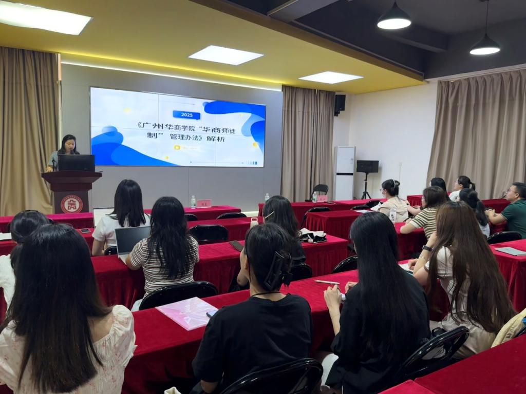 为了让师徒双方对“师徒制”的实施细则有更清晰的认识,陈平院长助理对《广州华商学院“华商师徒制”管理办法》进行了深入解读。她从导师资格与工作职责、培养对象及培养任务、师徒结对原则、方式及实施几个方面进行了详细说明。