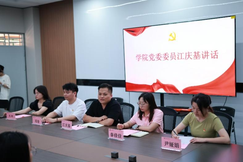 在总结发言中,江庆基同志向毕业生党员在校期间为学院发展、同学服务作出的积极贡献致以诚挚感谢,并提出三点殷切期望:一是保持终身学习,面对知识迭代加速、AI技术蓬勃发展的时代背景,树立终身学习理念,科学规划职业生涯,把握入职五年黄金发展期,主动适应职场规则。二是扛起文明离校责任,毕业周期间党员需充分发挥党员先锋模范作用,带动班级同学文明离校,关注同学动态,及时反馈突发情况。三是廉洁与初心嘱托,以年轻干部违纪案例警示,强调党员坚守初心使命,将“为中国人民谋幸福,为中华民族谋复兴”的初心使命转化为实际行动,鼓励同学们工作后分享经验、常回校交流。