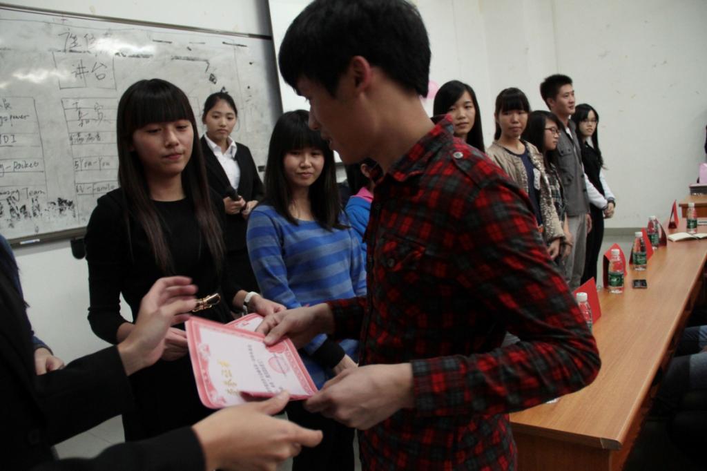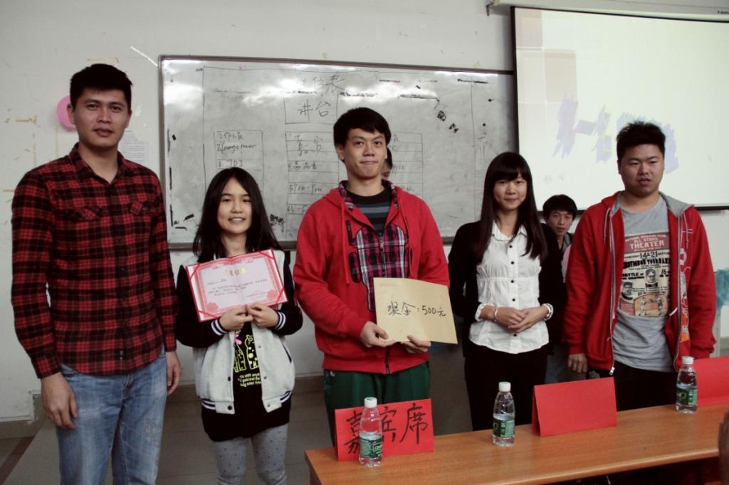 2013年12月9日星期一晚上七点半,商务策划营销大赛颁奖仪式于创新楼101正式举行。经济与金融系团学书记黄秋铭老师、辅导员张挥老师、经济与金融系团学主席叶智颖师姐、副主席谢怡雯师姐、曾其燊师兄以及各位部长来到了颁奖现场。