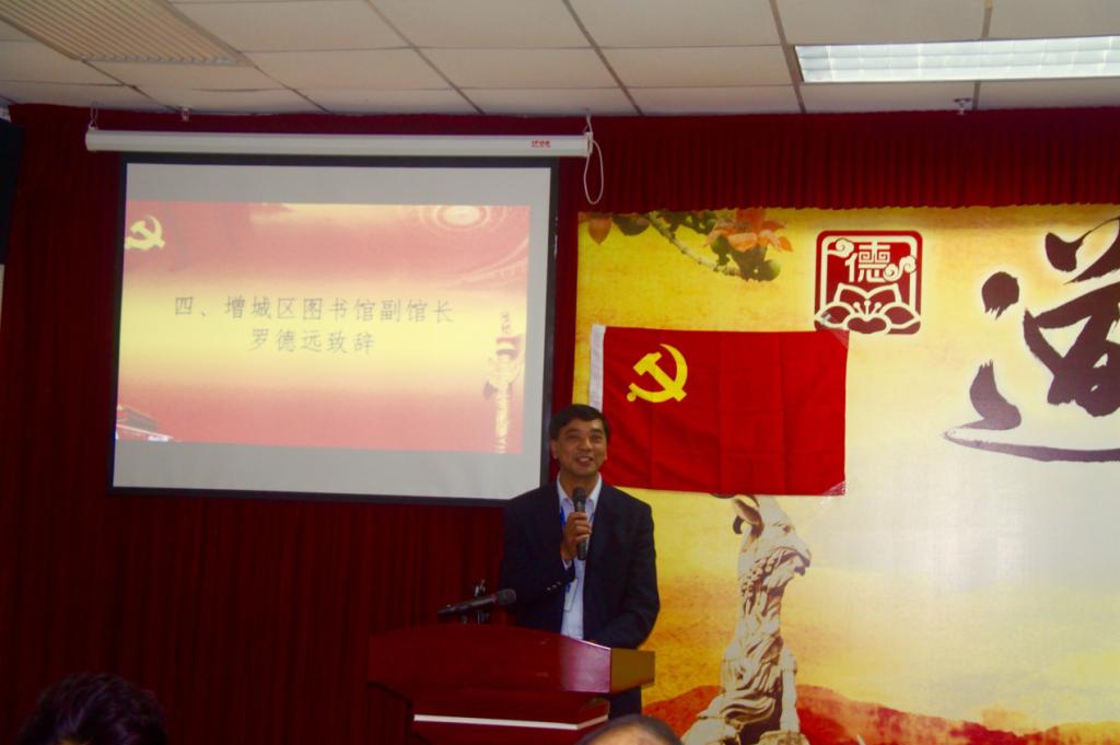 2016年12月22日下午4点半,广东财经大学华商会计学院党支在校外实践基地——增城区图书馆道德讲堂召开了增城区图书馆志愿者总结表彰大会。增城区图书馆副馆长罗德远,增城区图书馆顾问唐啟群,增城区图书馆综合外借部主任蓝惠洁,华商会计学院党总支副书记许娜,组织委员叶振斌老师以及各学生党支部书记出席了本次大会。
