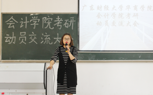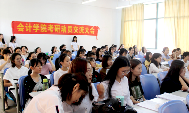 接着,许娜副院长讲述了会计学院举办考研交流大会和创建会计学院官方考研交流群的意义。她鼓励会计学院更多同学能够继续深造,提升学历。同时,表示会计学院将尽力给考研学生提供更多的帮助,为考上备考和经验交流创造条件。本次大会之后,学院将邀请到一些14届考研成功的同学们来交流分享考研经验以及学习技巧。