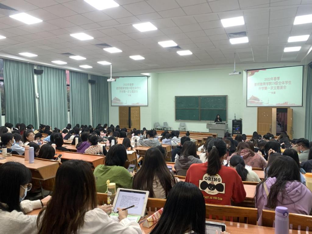 为进一步做好新学期大学生思想政治教育工作,认真贯彻落实全国高校思想政治工作会议精神,提高学生的政治站位和思想政治素养,教师教育学院开展了全院学生新学期第一次主题班会。班会分别由18级辅导员彭博娜主任、19级辅导员朱娜、20级辅导员丘依欣、21级辅导员林婷和21级辅导员杜佳梦主持召开。