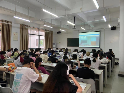 在讲座上,董洋老师将同学们遇到的职业困惑按照题型进行划分,逐一进行讲解,为同学们解答疑惑。同学们专心听讲,认真思考对自身认知的问题。