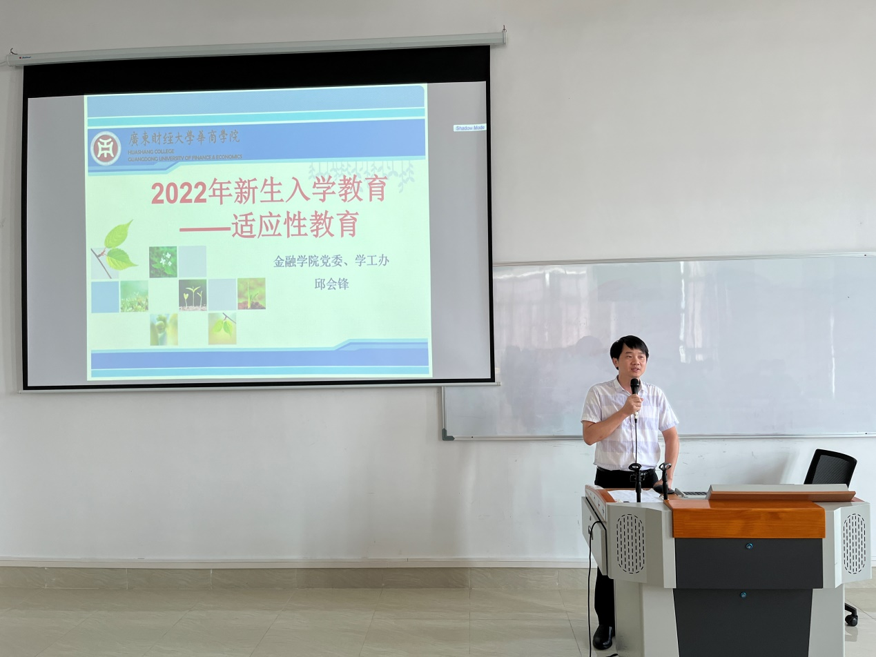 王汉章副院长就金融行业的特点作了深入介绍。他指出,当前国际国内经济形势下,同学们要深刻思考金融学什么以及如何学好金融。在课程体系建设上,金融学院坚持以金融为导向、以科技为引领、以教学为基础,制订了把学生培养为复合型金融人才的培养目标,建设了国内先进的数字金融实验中心,开设了金融科技菁英课程,旨在培养具有国际化视野的金融人才,坚持为金融行业输送适应未来发展趋势的杰出青年。他激励全体新生,要对所学专业充满信心,要关注金融科技发展热点,要深耕自己所学专业,并期望能在日后与同学们有更多交流。