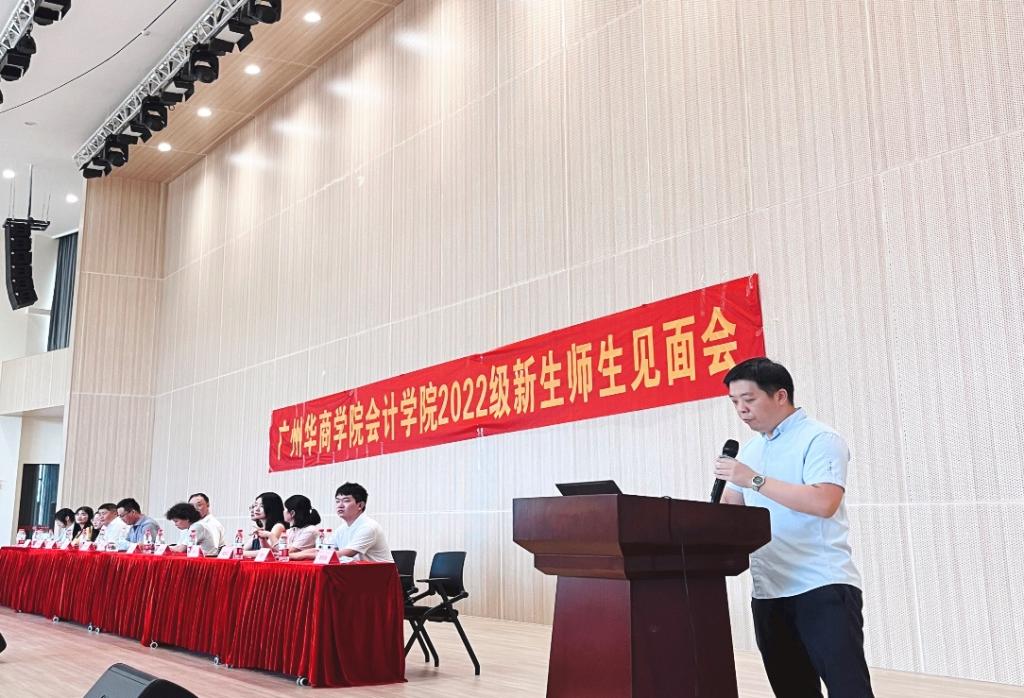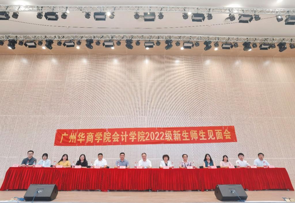 9月5日,广州华商学院会计学院2022级新生师生见面会在四会校区报告厅隆重举行。副校长兼会计学院院长陈美华,会计学院党委副书记兼副院长陈洋广,会计学院副院长杨旻、会计学院副院长兼办公室主任周书域、会计学院特聘教授刘善球等领导嘉宾出席本次见面会。见面会由会计学院学工办副主任杨烨瀚老师主持。