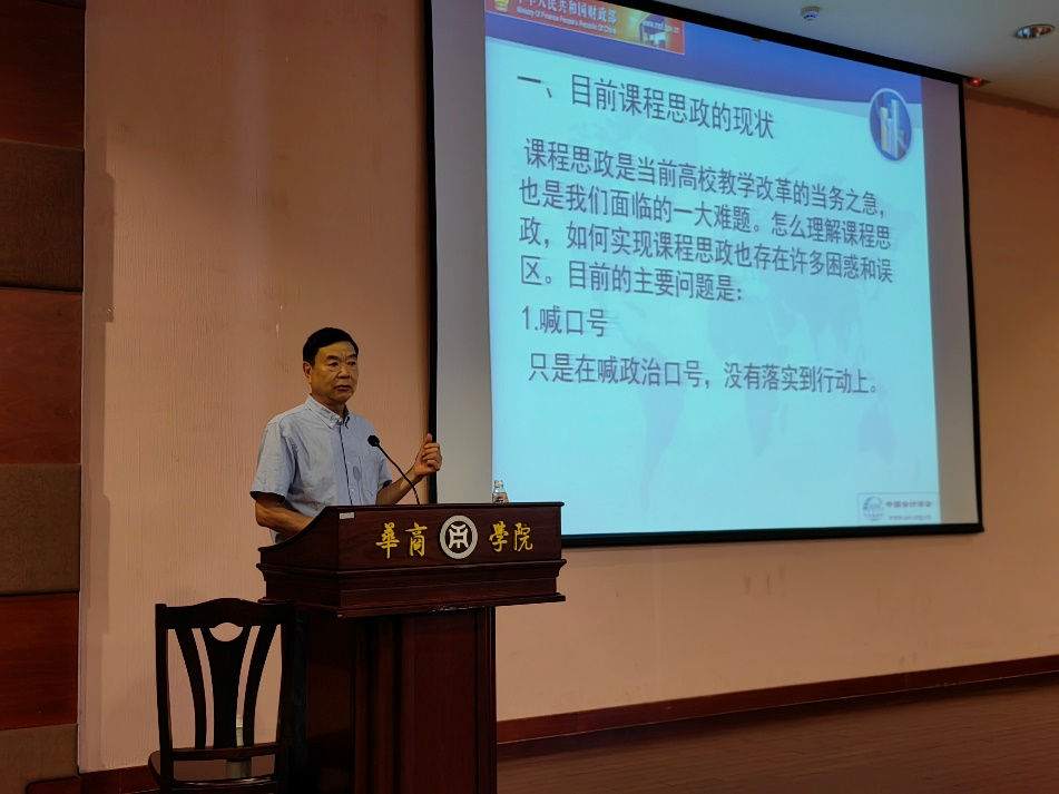 9月27日下午,中国会计学会副会长、广州华商学院特聘教授刘永泽应邀莅临我校会议中心四楼报告厅给会计学院师生作了主题为“关于课程思政的几个问题”的讲座。华商学院副校长兼会计学院院长陈美华教授、会计学院杨旻副院长、周书域副院长以及学院多位教师和学生参加了此次讲座,讲座由会计学院副院长杨旻教授主持。