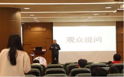 在提问互动环节中,参与现场讲座的同学向王健老师提出了这样的问题,如果想成为一名合格的新闻人,在大学阶段应如何努力?王健老师作出如下回答:成为一名合格的新闻人,首先要掌握新闻的本质,学会以人为本,保持客观,拥有新闻从业者的情怀;除此之外要努力学好当下,先不去考虑未来如何,多去读书,努力提升自己。