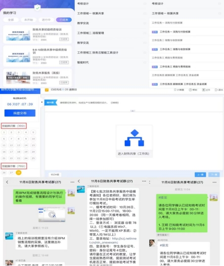 考前培训由财务共享服务课程任课教师丁朝辉老师和叶鹏老师负责。培训内容包括核算共享(采购与付款核算、销售与收款核算、商旅与费用核算、薪酬与社保核算、资金结算等)、流程管理(业务流程设计、业务流程实施、业务流程优化等)与财务云智能工具设计三个模块。老师组织同学们进行线上视频学习、习题演练与模拟考试,及时解答大家在学习、练习过程中遇到的问题。