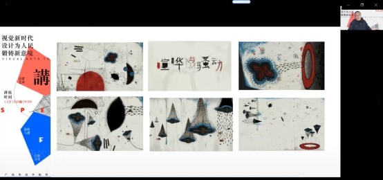 讲座开始,主持人戴金玲老师开场,介绍了主讲嘉宾和讲座环节安排。本讲阐释了二十大之后,中国视觉艺术必将迎来更多发展机遇。视觉设计必须牢牢把握:第一、设计必须以人民为本,设计师必须以高度的责任感响应时代呼唤;第二、坚持视觉形式的创造性转化,创新性锻铸视觉设计的新意境;第三、依托新时代数字视觉技术,打造新时代视觉设计的新创作模式。本讲将以壹葉堂多元(诗意动画、红色设计、数字媒体、艺术插画)的实践创作为例,解读视觉专业方向在新时代多种创作路径和服务民众的情结,从而激励视觉设计师生主动承担起以“新意境”以“新意境”引领全民寻梦的热情。