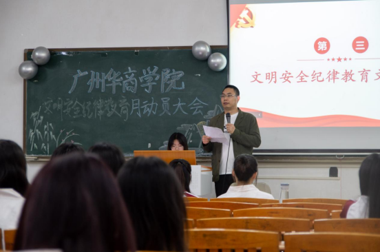 为贯彻落实学校关于2023年文明安全纪律教育月相关通知的具体要求,推进文明安全纪律教育月活动有序开展,规范广大学生言行举止,增强文明、安全、纪律意识,形成良好的校风学风班风,建设和谐校园,广州华商学院管理学院于2023年4月3日17:50在励志楼D106与四会校区通过腾讯会议同步召开2023年文明安全纪律教育月动员大会。