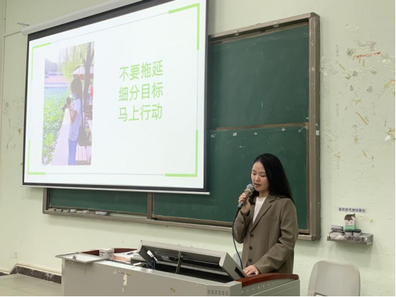 除了志愿活动,温诗同学提到生活与学习中大家熟悉的“拖延症”。她表示自己曾经也是“拖延症”选手,她分析拖延的原因一般有两点,一是事情不够紧张、重要,二是时间还充足。面对“拖延症”她给出一定的建议,把需要完成的任务细分规划好,设立小目标更容易完成,也更有成就感。同时,她建议大家多运动,运动可以改变一个人的精神风貌,也有助于身体健康。