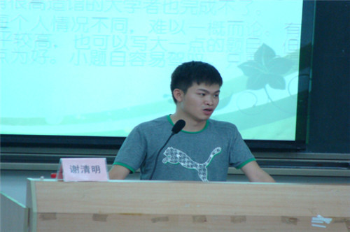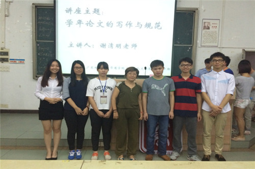 5月25日晚,文学系在励志楼B307举办了题为“学年论文的写作和规范”的讲座,由文学系辅导员谢清明老师主讲。谢清明老师从论文的选题、论文资料的收集与使用以及论文的结构三个方面生动细致地讲述了如何完成一篇高质量的毕业论文。