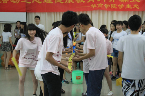 随后,现场全体成员分批进行了心理健康签名。签名活动结束后,心康中心三位老师领导开展了心理素质拓展运动。经过各心康站代表队的激烈角逐,经济与金融系心康站代表队同时夺得了同舟共济、珠行万里的冠军。