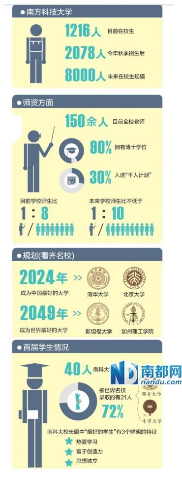 正是有各方面的优势,陈十一认为南科大已具备成为中国的世界一流大学的基因。他提出的规划,是到2024年,南科大应比肩清华、北大,成为中国最好的大学;到2049年,要比肩加州理工学院、斯坦福大学等,成为世界最好的大学。他说,虽然学校的历史沉淀不如这些世界名校,但可以在教师的学术水平、创新人才的培养,以及科技成果的转化方面做到最好。