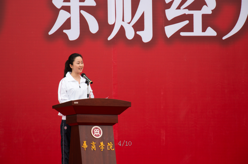 启动仪式上,来自文学系的学生志愿者代表上台发言。作为华商的一份子,她认为,能在十周年校庆之际为华商服务,是学生志愿行动中的幸运时刻,志愿者们都将带着“奉献、友爱、互助、进步”这种志愿者的精神投入到校庆活动的准备工作之中。随后,她带领全场志愿者喊出了“我志愿,我服务,为母校献礼,一起来,更精彩。”的口号!