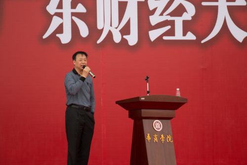 表演过后,陈玉川院长上台发表讲话。讲话中,陈院长提出,十周年校庆是华商发展的重要机遇,是向社会展示华商成长历程的重要时刻,全院上下应凝聚人心,共同展望未来。他指出,华商的每一个发展阶段都离不开广大师生的辛勤努力与付出。借着十周年契机,学院将进一步转变教学观念,紧紧围绕培养应用型本科人才的教育目标,完善办学设施,强化教学改革,全面提升教育质量。同时,陈院长透露,十周年校庆的筹备工作将围绕学术活动、学生社团活动、教育科研成果展、校园美化、晚会等众多形式进行。最后,陈院长发起号召,希望全体师生将校庆筹备工作与日常工作有机结合,协同发展,共同为华商作出自己应有的贡献。