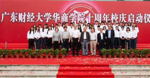 3月30日上午10点,广东财经大学华商学院十周年校庆启动仪式在我院图书馆广场顺利举行。廖榕就董事长、陈玉川院长、苏宁书记等学院领导莅临仪式现场,与近500名学生志愿者、教职工代表共同见证这一时刻。
