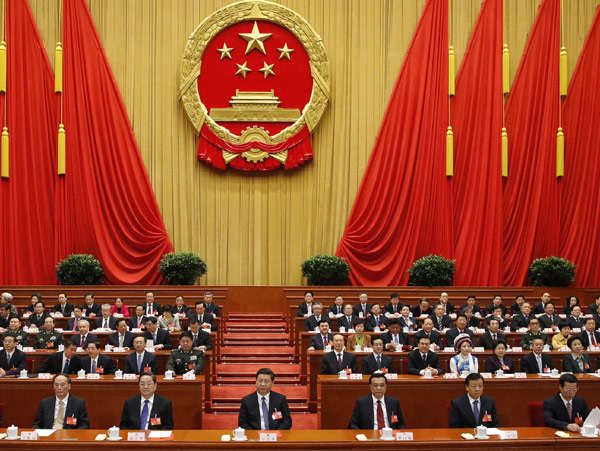 习近平、李克强、俞正声、刘云山、王岐山、张高丽和大会主席团成员在主席台就座。
