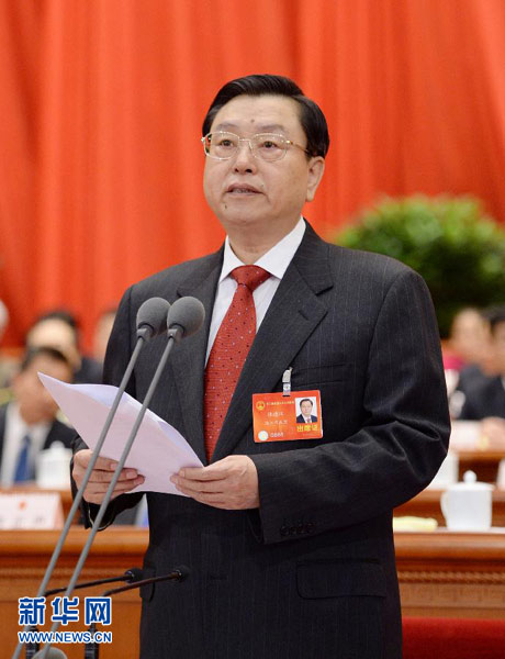 3月13日,第十二届全国人民代表大会第二次会议在北京人民大会堂举行闭幕会。张德江主持闭幕会并讲话。 新华社记者 李学仁 摄