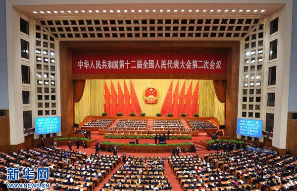 3月13日,第十二届全国人民代表大会第二次会议在北京人民大会堂举行闭幕会。 新华社记者 张铎 摄