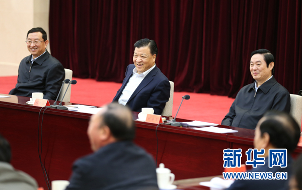 4月8日,中共中央政治局常委、中央书记处书记刘云山在北京出席深化中国梦宣传教育座谈会并讲话。 新华社记者姚大伟摄