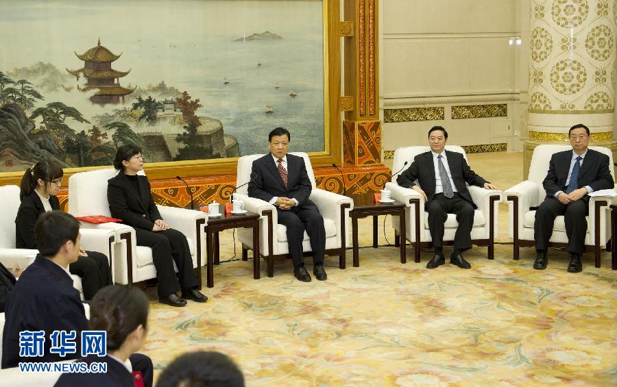 12月17日,中共中央政治局常委刘云山在北京人民大会堂会见罗阳同志先进事迹报告团成员。 新华社记者 黄敬文摄