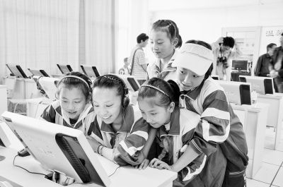 西藏昌都小学的学生在使用计算机上课。