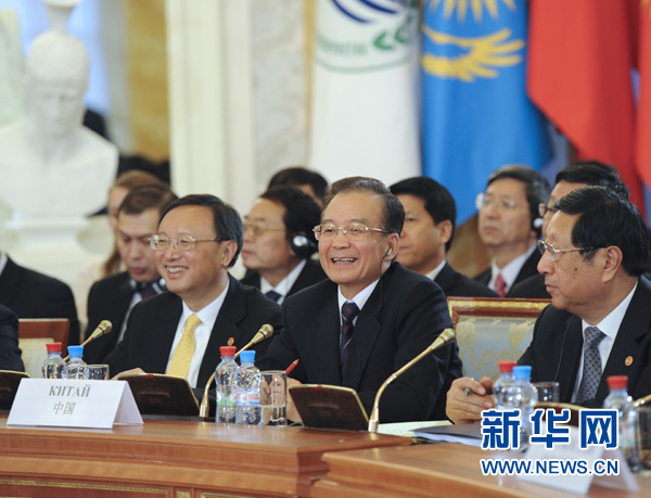 11月7日,国务院总理温家宝在俄罗斯圣彼得堡出席上海合作组织成员国总理第十次会议并发表讲话。新华社记者马占成摄