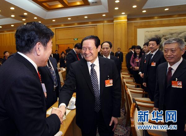 3月6日,中共中央政治局常委、中央政法委书记周永康参加十一届全国人大四次会议黑龙江代表团的审议。 新华社记者 兰红光 摄 |