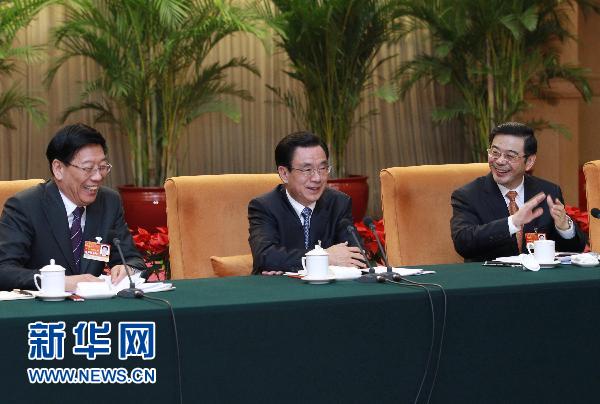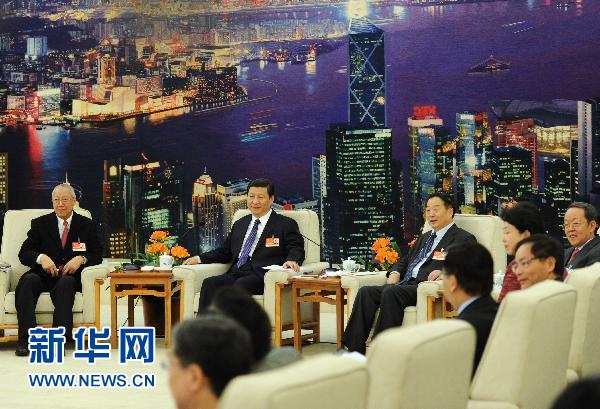 在香港代表团,代表们发言踊跃。习近平在认真听取代表们发言后指出,国家“十二五”规划纲要草案界定了香港在国家经济发展全局中的地位作用,阐明了支持香港巩固提升竞争优势、培育新兴产业、深化与内地经济合作的政策举措,将对促进香港繁荣发展产生积极影响。希望香港社会各界凝聚共识,与祖国内地携手并进、共创辉煌。希望香港地区全国人大代表深入贯彻“一国两制”方针和基本法,全力支持特别行政区行政长官和政府依法施政,为促进香港经济发展、民生改善、社会和谐发挥积极作用。