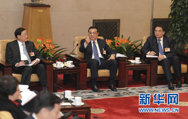 3月6日,中共中央政治局常委、国务院副总理李克强参加十一届全国人大四次会议辽宁代表团的审议。 新华社记者 谢环驰 摄 |