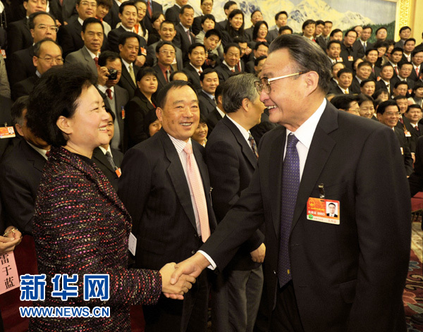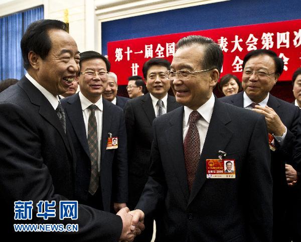 3月6日,中共中央政治局常委、国务院总理温家宝参加十一届全国人大四次会议甘肃代表团的审议。 新华社记者 李学仁 摄 |
