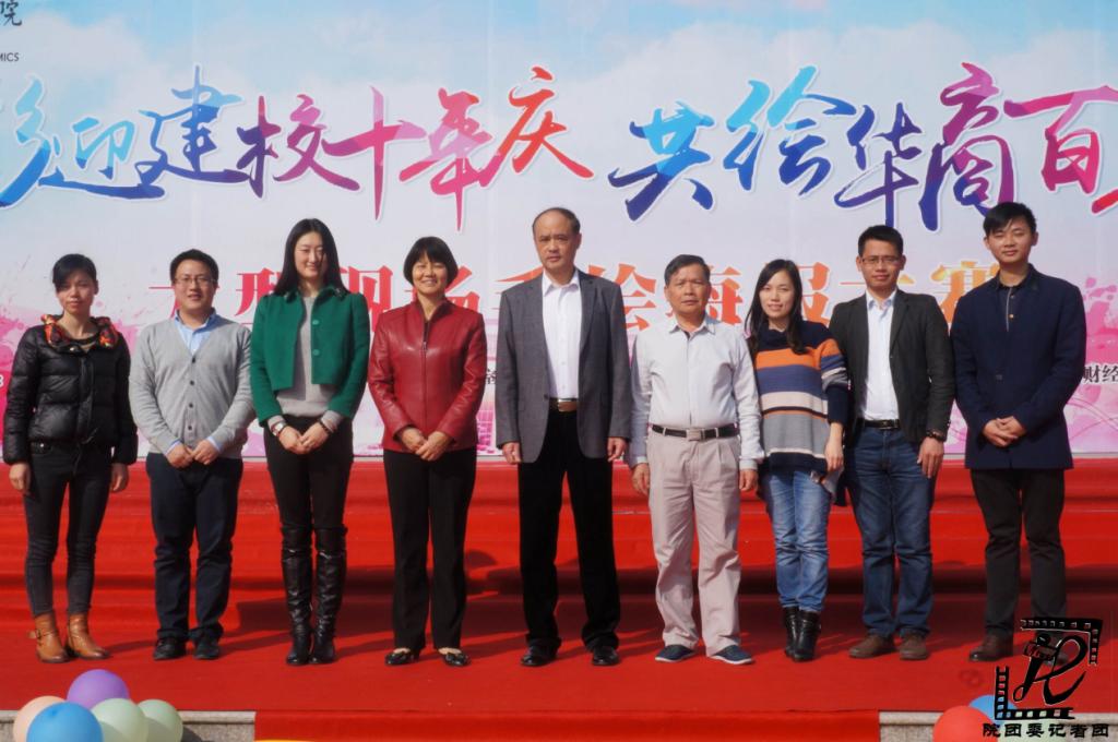 2015年12月15日下午14点,由广东财经大学华商学院主办,校庆筹备工作办公室(宣传组)、共青团广东财经大学华商学院委员会承办的“彩迎建校十年庆,共绘华商百年梦”校庆大型现场手绘海报大赛在图书馆门前盛大举行。出席本次比赛的领导嘉宾有:学院党委苏宁书记,学院邓基泽副院长、王锦绣副院长,学院宣传办公室荆杰副处长,党委组织科副科长骆帼棣老师,学院团委黄剑年老师,校庆筹备工作办公室陈刚老师、杨秀东老师、胡小娟老师、周大棱老师。