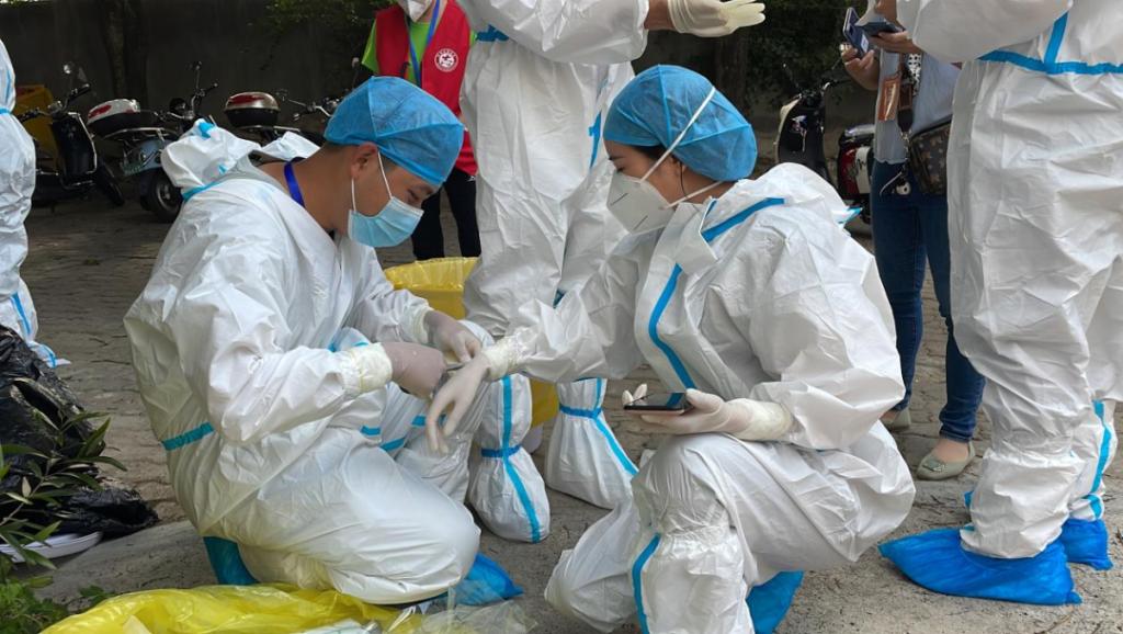 每天早上5~6点钟起床,扛起摄影器材,早于医护人员到达现场,记录疫情防控下社区的日常。从穿防护服,准备核酸所需材料,志愿者搬运物资;到深入确诊病例所在小区,挨家挨户做核酸,他成为“大白”背后的记录者。